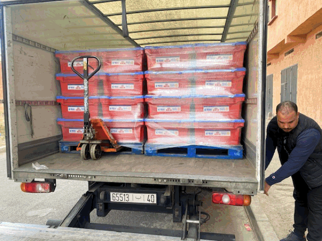 A further shipment of 200 Water Survival Boxes in transit to Morocco distributed by Association Scout du Maroc after the earthquake.